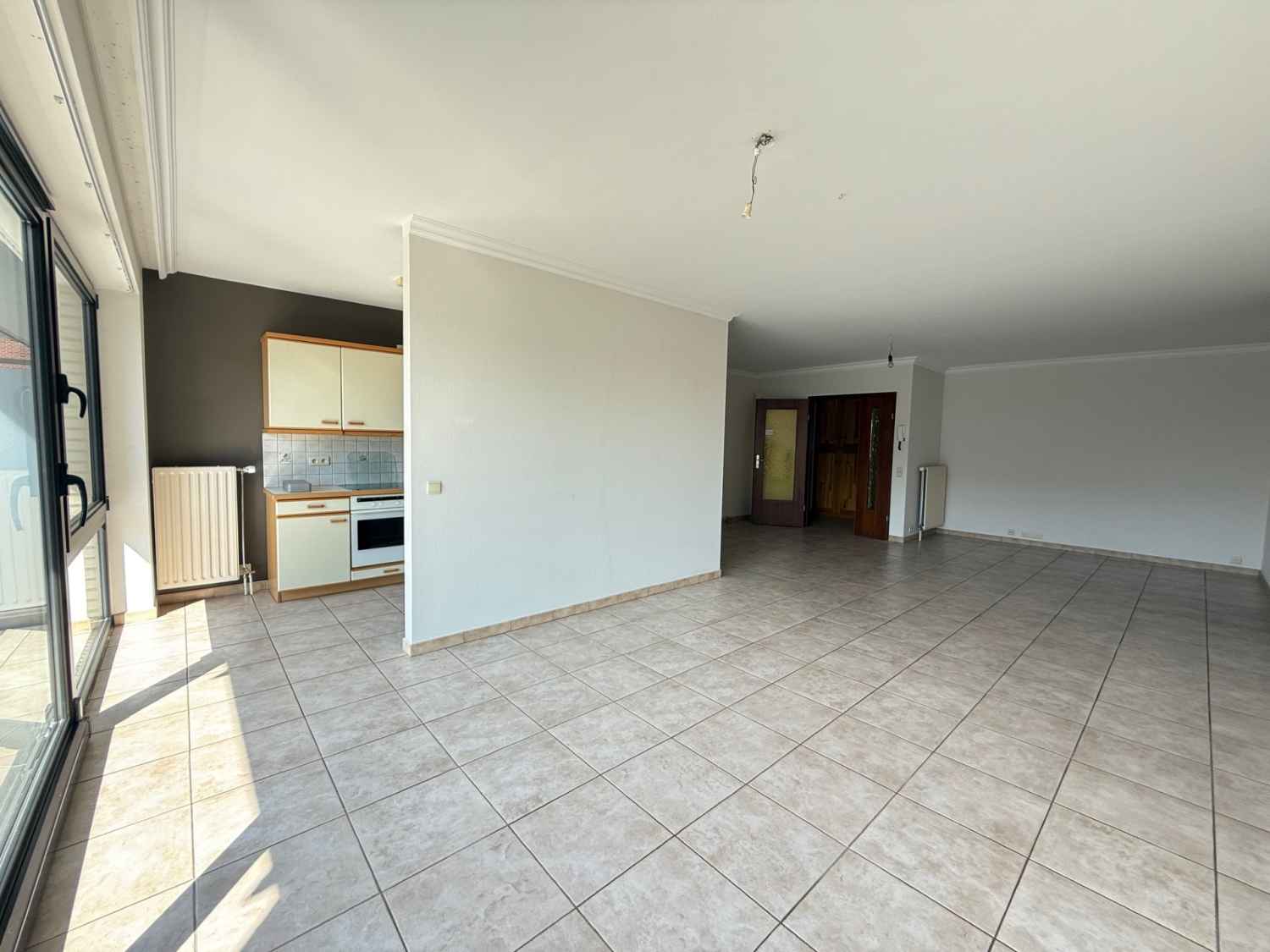 Situé au 1er étage d’un immeuble avec ascenseur, cet appartement de 100 m² (selon PEB) situé dans le centre de Welkenraedt est composé comme suit ;