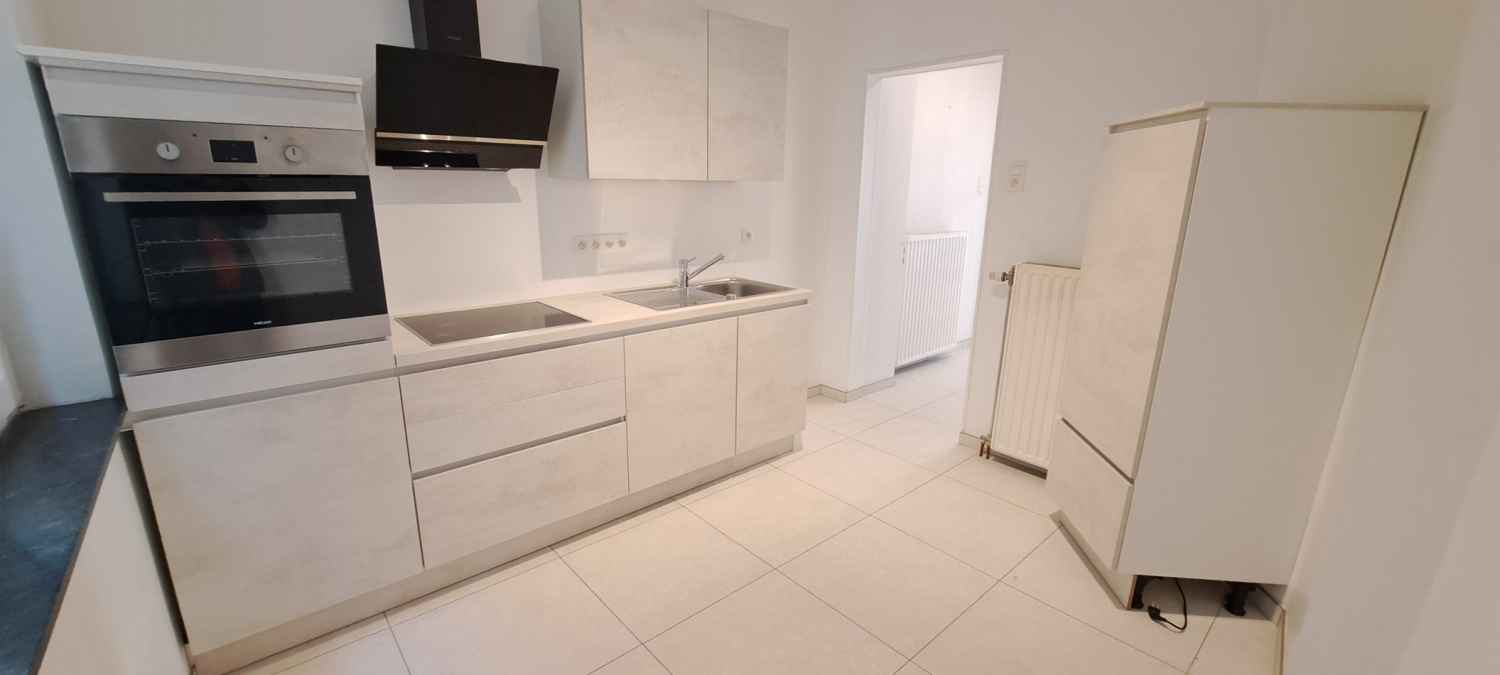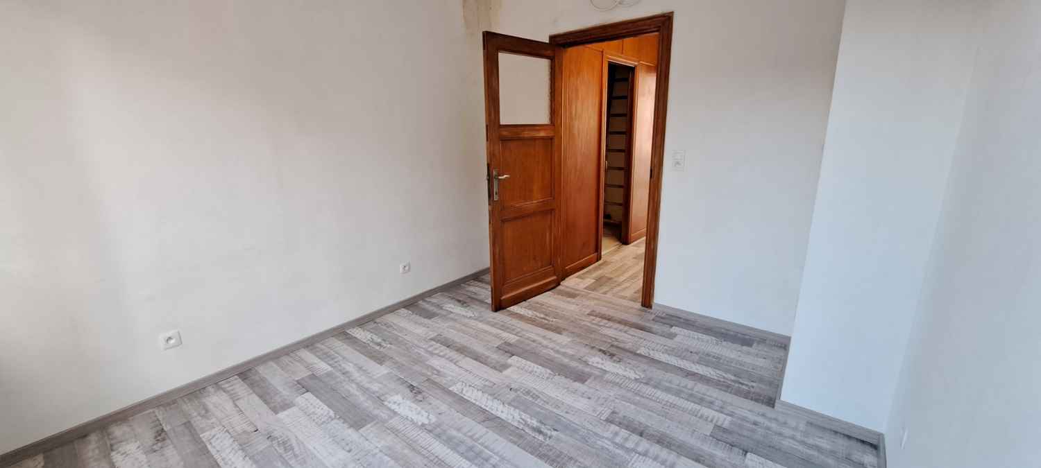 Maison unifamiliale : salon, cuisine (semi-équipé), salle de bain, wc séparé, 3 chambres, débarras, caves, espace extérieur (très petit).