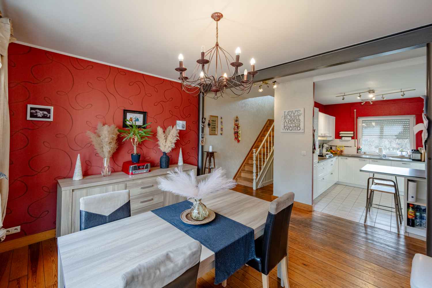 Au rez-de-chaussée : cuisine ouverte et salon lumineux.
